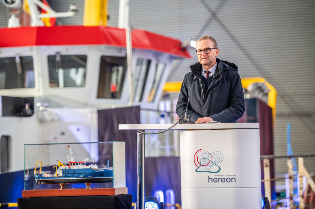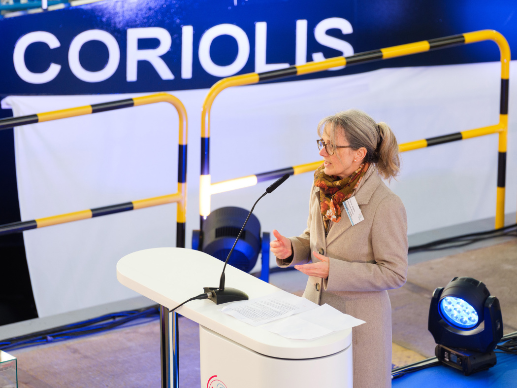Vertreterinnen und Vertreter des Hereons zeigten sich ebenso enthusiastisch. „Die CORIOLIS wird zu unserem Markenbotschafter, indem fächerübergreifend und lösungsorientiert mit Hilfe von Beobachtungen, Experimenten, KI und Digitalen Zwillingen komplexe Systeme, wie etwa unsere Küsten erforscht werden. Sie ist nicht nur für die Küstenforschung elementar, sondern ein Werkzeug für unser ganzes Zentrum, weil auch Wasserstoff- und Membrantechnologie zum Einsatz kommen“, sagte Frau Prof. Regine Willumeit-Römer, Wissenschaftliche Geschäftsführerin am Hereon.