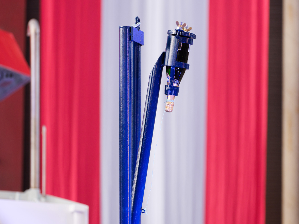 Nach dem Aufprall der Flasche gab es lauten Applaus. Foto: Hereon/ Marcel Schwickerath