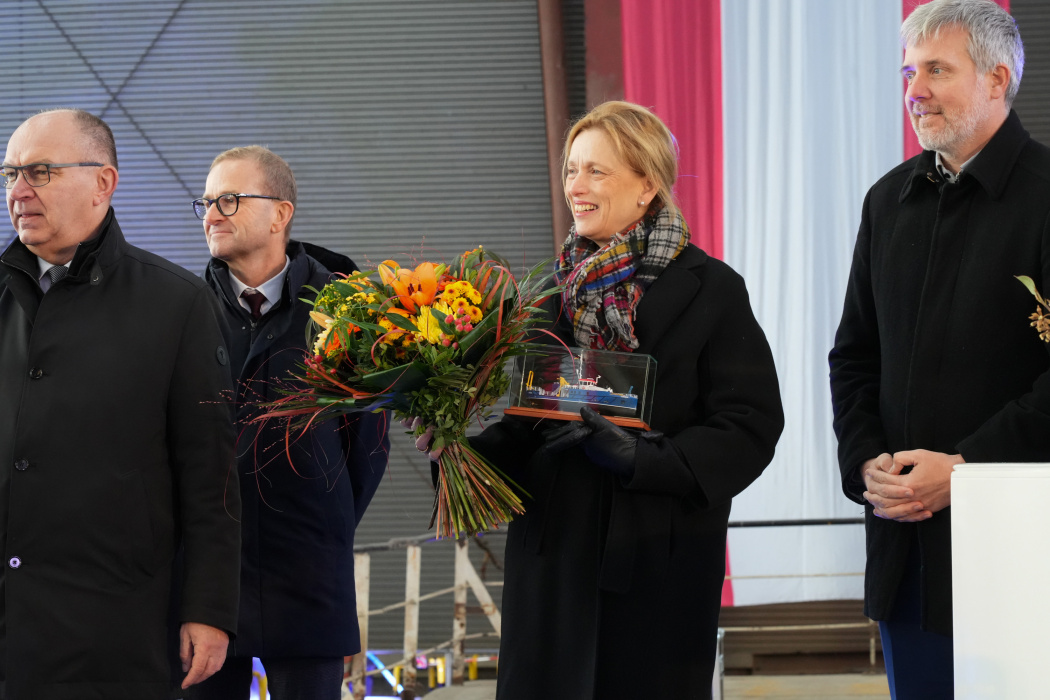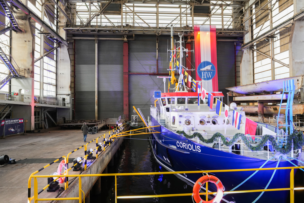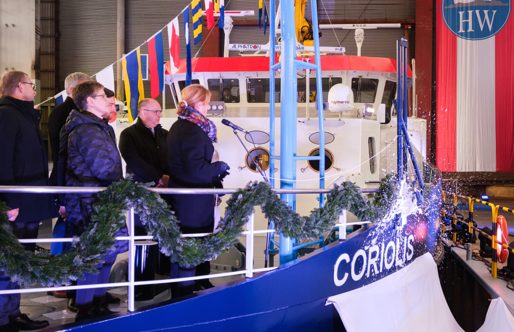 Das neue Hereon-Forschungsschiff CORIOLIS ist am 18.11.2024 auf der Hitzler Werft in Lauenburg getauft worden