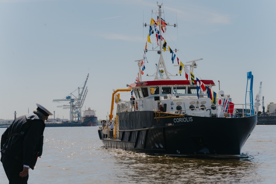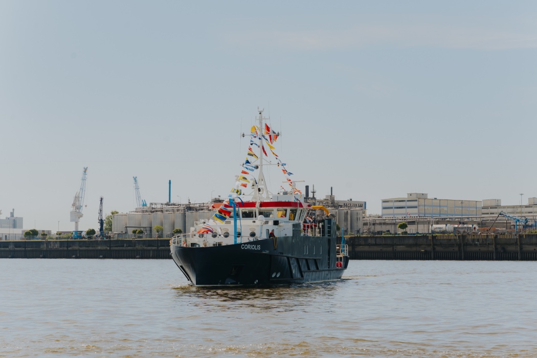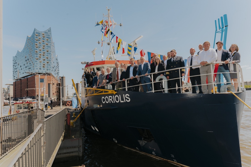 Dass das Schiff die Mission einer Erforschung der Küsten und den Einsatz innovativer Materialforschung in einem „schwimmenden Labor“ vereint und so zum Markenbotschafter des Hereons wird, stand auch für die Hereon-Geschäftsführung im Zentrum des Besuchs auf dem Hafengeburtstag. „Es ist von höchster Wichtigkeit, dass die Schifffahrt sich dem Ziel Klimaneutralität nähert. Das gilt für Forschungsschiffe ganz besonders. Deswegen ist unsere CORIOLIS ein großer und wichtiger Schritt in die richtige Richtung“, sagte Frau Prof. Regine Willumeit-Römer, Wissenschaftliche Geschäftsführerin am Hereon. Die Kaufmännische Geschäftsführerin Elisabeth Gerndt betonte zusätzlich den Aspekt der Technologie: „Das Schiff ist in jeder Hinsicht von besonderem Wert für das Hereon. Das Spektrum der in der CORIOLIS kombinierten Technologien ist weltweit einzigartig. Wir freuen uns darauf, dass nun bald die Jungfernfahrt stattfinden kann und die CORIOLIS im Anschluss die ersten Forschungsergebnisse mitbringen wird.“