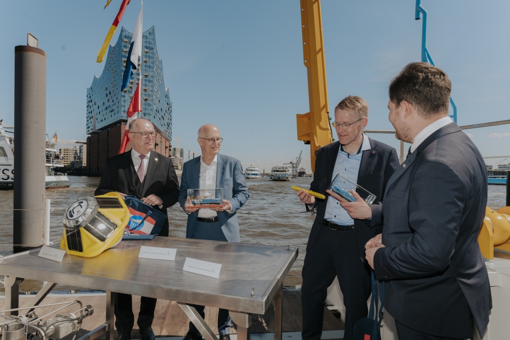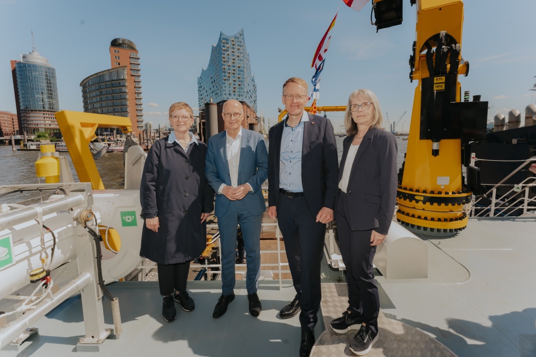 Peter Tschentscher zeigte sich begeistert von der Technik und dem Forschungsauftrag des Schiffes: „Wir haben erfahren, dass an Bord Elektronik, Chemie, Biologie und Physik eine Rolle spielen und dass hier im Grunde die Schifffahrt der Zukunft erforscht wird, denn es geht um Wasserstoff als Energieträger und um die Erforschung der Auswirkungen von Nähr- und Schadstoffen auf die Meere – wie auch Mikroplastik im Wasser. Das sind Themen, um die wir uns kümmern müssen und dafür brauchen wir Daten, Daten, Daten und deren wissenschaftliche Aufarbeitung.“