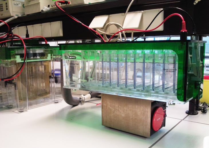Elektrophorese Kammer zur Proteintrennung (Foto: Heike Helmholz/Hereon)