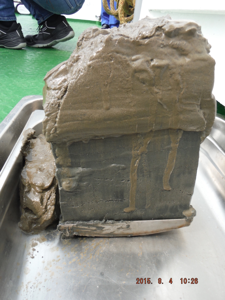 Sedimentprobenahme mit einem Kastengreifer (Foto: Tristan Zimmermann/Hereon)