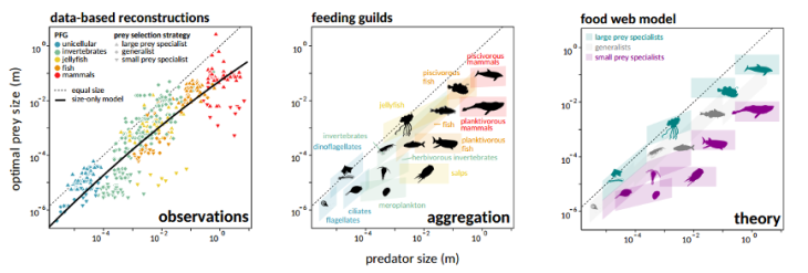 Nur wenige öko-evolutionäre Regeln für den Aufbau von Nahrungsnetzen ergeben sich aus den universellen Merkmalen Spezialisierung der Ernährung und Körpergröße. Diese Regeln basieren auf wiederholten Mustern in der Beutewahl aquatischer Räuber über mehrere Größenordnungen der Körpergröße und unabhängig von Taxa.